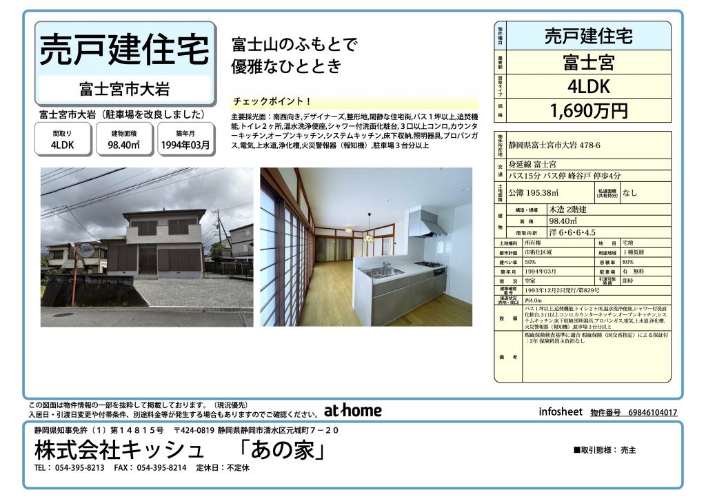 【販売開始】『あの家』リノベーション済中古戸建 / 富士宮市大岩 / 1690万円